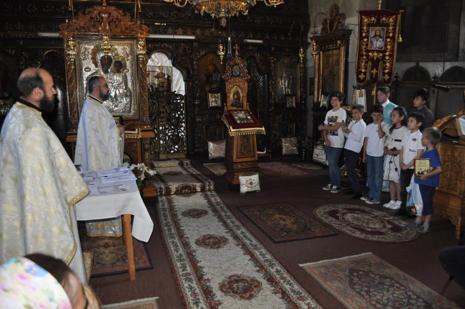 A patra întâlnire catehetică, desfăşurată astăzi, la sfârşitul Sfintei Liturghii, s-a concretizat întru-un concurs. Într-o primă parte, copiii au rostit Crezul în biserică, în faţa credincioţilor, ca mărturisire a credinţei noastre, urmand apoi ca în partea a doua a concursului să răspundă întrebărilor venite din partea celor doi preoţi despre învăţăturile şi simbolurile Crezului.